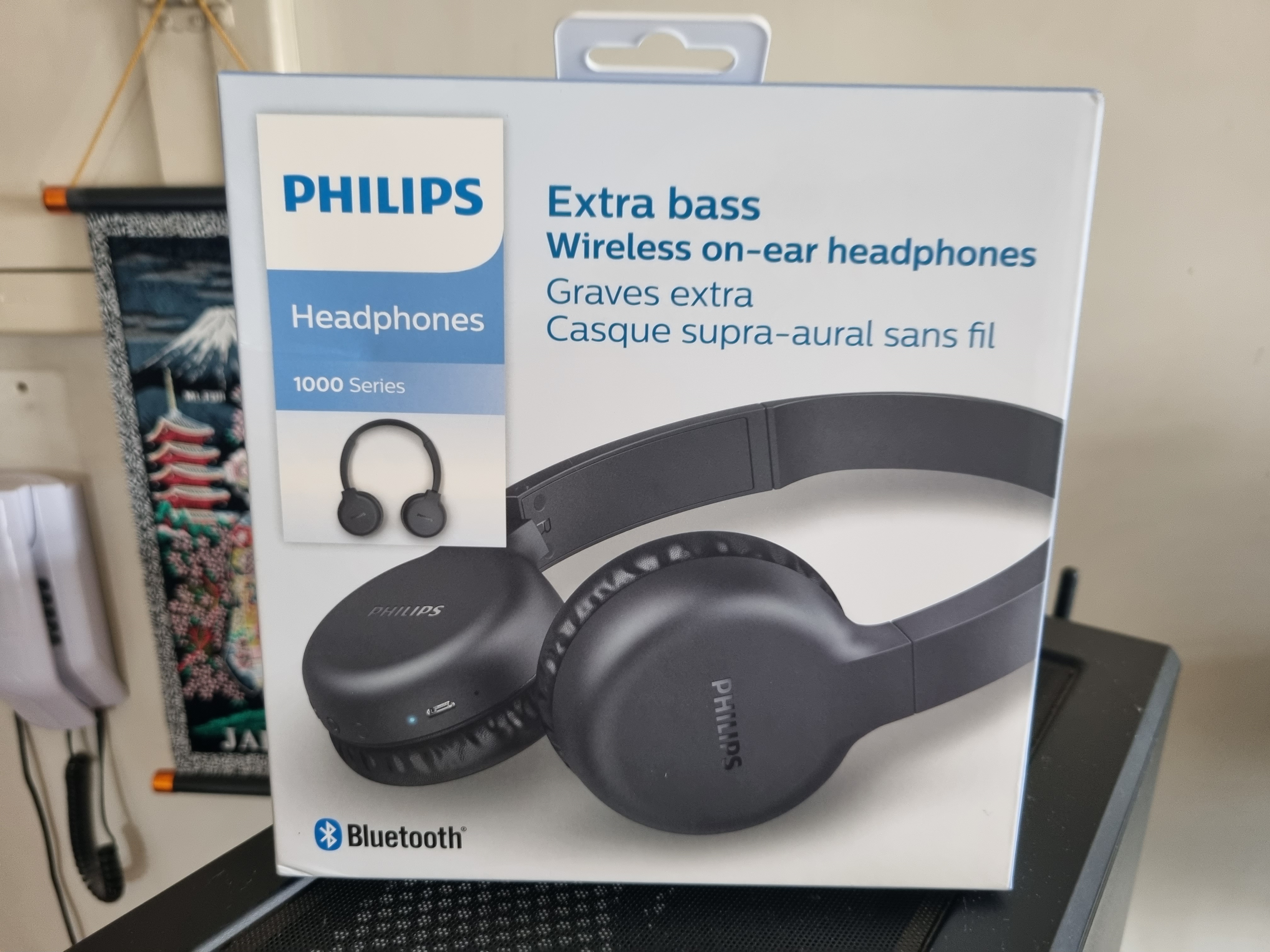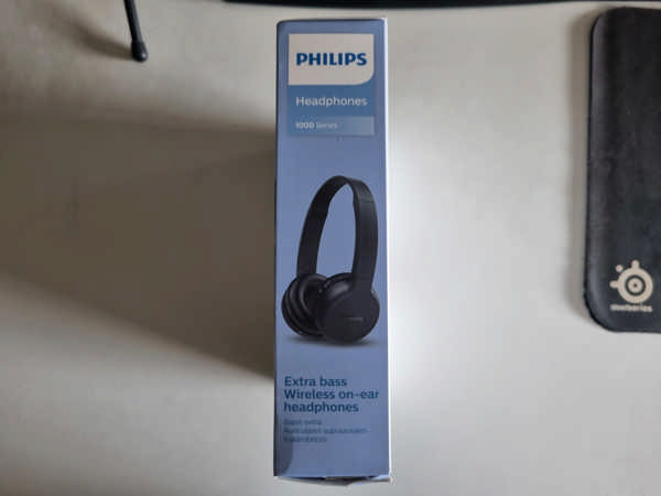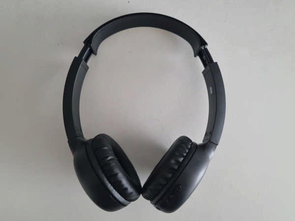 The box is pretty much standard cardboard, displaying some of the product's specifications, like Bluetooth 5.1, the Extra Bass (I didn't know the headset featured it), the 15 hour battery duration, flat folding and mic/controls. And it comes with a USB cable for recharging.